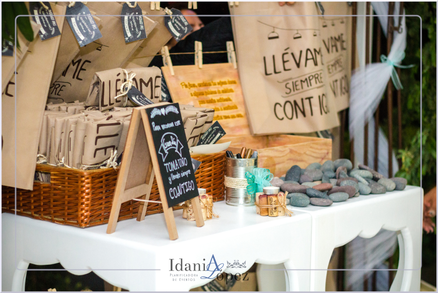 Personalmente, te recomiendo que los recuerdos sean útiles, además de significativos. Por ejemplo, sandalias o pantuflas de descanso, pashminas, llaveros o espejos personalizados con las iniciales de los novios.